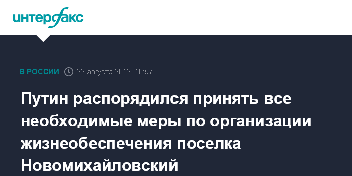 Путин распорядился принять все необходимые меры по организации жизнеобеспечения поселка Новомихайловский