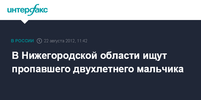 Нижний Новгород. 22 августа. INTERFAX.RU - Представители силовых ведомств и местные жители в среду прочесывают окрестности села Медяны в Нижегородской области в поисках двухлетнего ребенка, пропавшего накануне вечером.