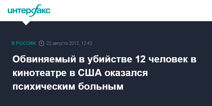 Обвиняемый в убийстве 12 человек в кинотеатре в США оказался психическим больным