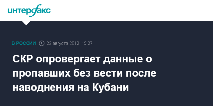 СКР опровергает данные о пропавших без вести после наводнения на Кубани