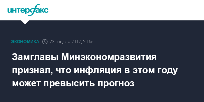 Москва. 22 августа. INTERFAX.RU - Инфляция в РФ в 2012 г. может превысить действующий официальный прогноз правительства и ЦБ в 5-6% и составить около 7%, сообщил замглавы Минэкономразвития РФ Андрей Клепач на брифинге в Москве в среду.