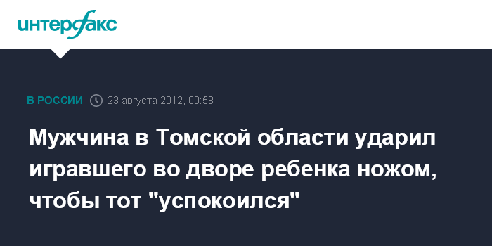 Мужчина в Томской области ударил игравшего во дворе ребенка ножом, чтобы тот "успокоился"
