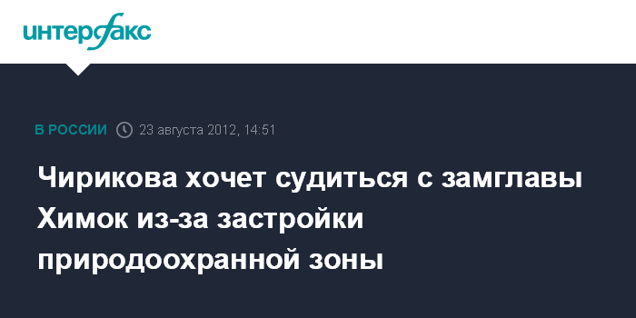 Чирикова хочет судиться с замглавы Химок из-за застройки природоохранной зоны