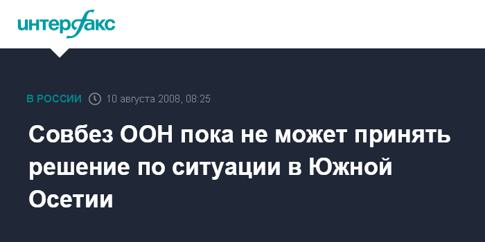 Москва. 10 августа. INTERFAX.RU - Совет Безопасности ООН пока не в состоянии принять никаких решений по обострившейся обстановке в зоне грузино-югоосетинского конфликта, передает телеканал "Вести-24".