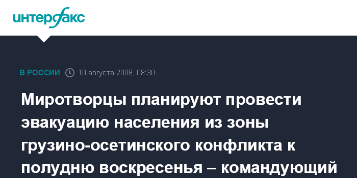 Миротворцы планируют провести эвакуацию населения из зоны грузино-осетинского конфликта к полудню воскресенья – командующий