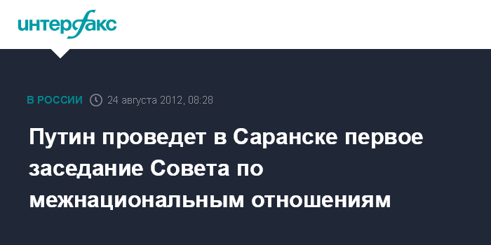 Путин проведет в Саранске первое заседание Совета по межнациональным отношениям