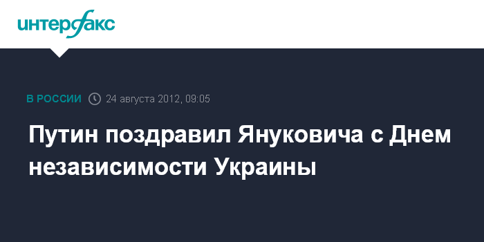 Киев. 24 августа. INTERFAX.RU - Президент Украины Виктор Янукович получил поздравления с Днем Независимости от президента Российской Федерации Владимира Путина, сообщает пресс-служба Януковича.