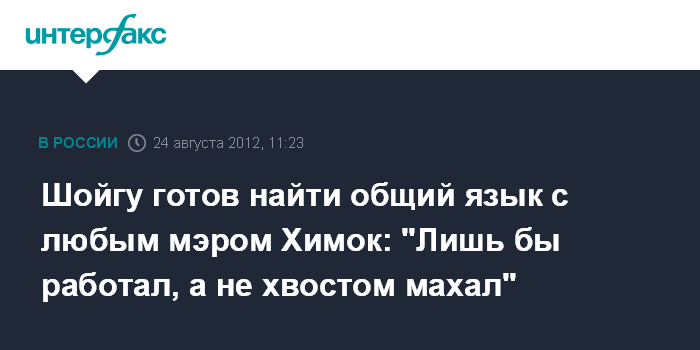 Шойгу готов найти общий язык с любым мэром Химок: "Лишь бы работал, а не хвостом махал"