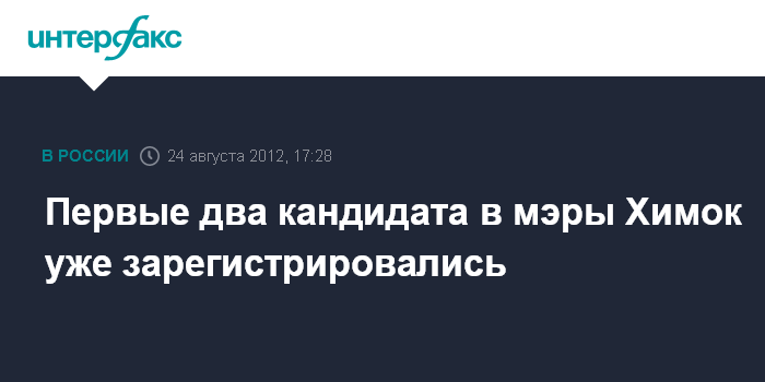 Москва. 24 августа. INTERFAX.RU - На пост мэра Химок уже есть двое претендентов, которые зарегистрировались в первые два часа приема заявок. "У нас уже есть два первых выдвиженца: кандидат от экологической партии "Зеленые" Алексей Гусенков, и самовыдвиженец, юрист Юрий Поздняков", - заявил председатель избирательной комиссии Московской области Ирек Вильданов "Интерфаксу" в пятницу.