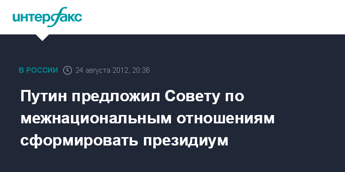 Саранск. 24 августа. INTERFAX.RU - Президент России Владимир Путин предложил создать в Совета по межнациональным отношениям президиум, чтобы в оперативном режиме обсуждать различные аспекты этой проблемы.