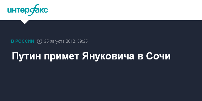 Москва. 25 августа. ИНТЕРФАКС - В Сочи в субботу состоится встреча президента РФ Владимира Путина с его украинским коллегой Виктором Януковичем, который посетит Россию с рабочим визитом, сообщила пресс-служба Кремля.