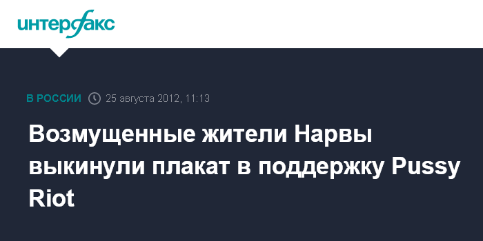 Таллин. 25 августа. INTERFAX.RU - В Эстонии в приграничном городе Нарва жители города в субботу скинули скандальный плакат в поддержку Pussy Riot, вывешенный ранее на бастионе "Виктория"/ Плакат успел провисеть всего пару часов, после чего жители города скинули его вниз.