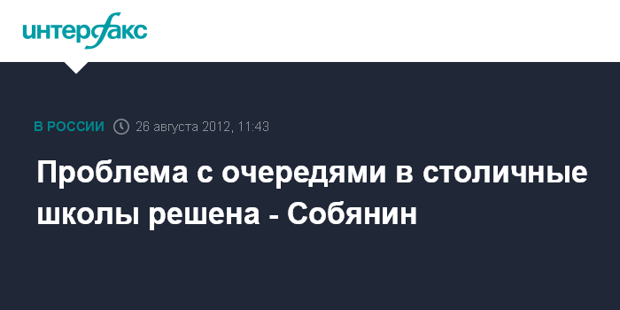Москва. 26 августа. INTERFAX.RU - Электронная запись решила проблему с очередями в столичные школы, сообщил мэр Москвы Сергей Собянин в интервью каналу "Россия-1" в воскресенье. "Раньше, если вы помните, устраивались целые очередь. Жгли костры возле школ. Сейчас ничего этого нет", - сказал С.Собянин. "Все детки устроены, записались, большая часть - по месту жительства", - отметил градоначальник.