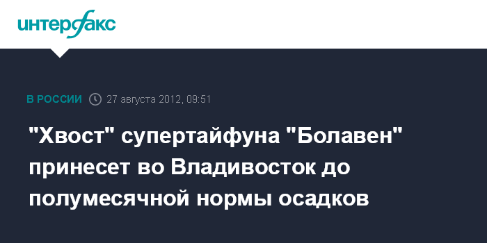 "Хвост" супертайфуна "Болавен" принесет во Владивосток до полумесячной нормы осадков