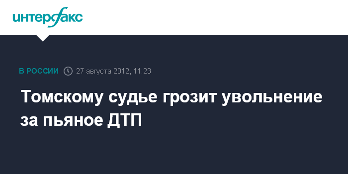 Томск. 27 августа. INTERFAX.RU - Судья в Томской области, попавшая в пьяном виде в ДТП, может лишиться должности, сообщили агентству "Интерфакс-Сибирь" в понедельник в пресс-службе суда.