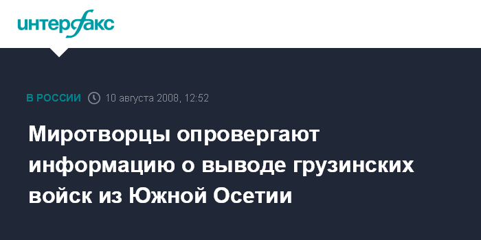 Москва. 10 августа. INTERFAX.RU - Сообщения МВД Грузии об отводе грузинских регулярных войск из Южной Осетии не соответствуют действительности, заявил "Интерфаксу" представитель командования миротворческих сил.