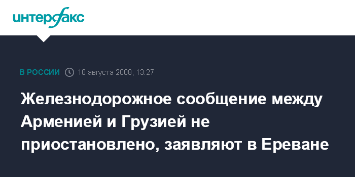 Ереван. 10 августа. INTERFAX.RU - Решения о приостановке железнодорожного сообщения между Арменией и Грузией нет, сообщила "Интерфаксу" в воскресенье пресс-секретарь министерства транспорта и связи Армении Сусанна Тоноян.
