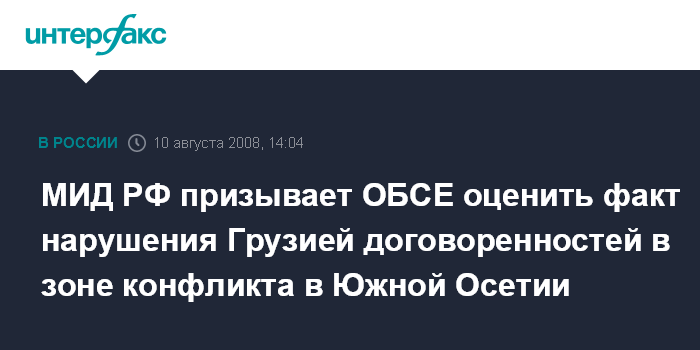 Москва.10 августа. INTERFAX.RU - В Москве удивлены реакцией ОБСЕ на события в зоне грузино-осетинского конфликта и призывают председателя ОБСЕ способствовать выводу грузинских формирований из Южной Осетии.