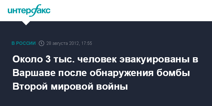 Около 3 тыс. человек эвакуированы в Варшаве после обнаружения бомбы Второй мировой войны
