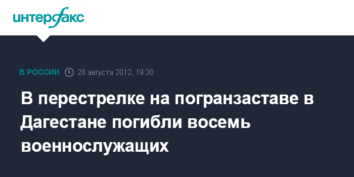 Москва. 28 августа. INTERFAX.RU - По предварительным данным, в результате перестрелки на погранзаставе близ селения Белиджи Дербентского района Дагестана погибли восемь человек.