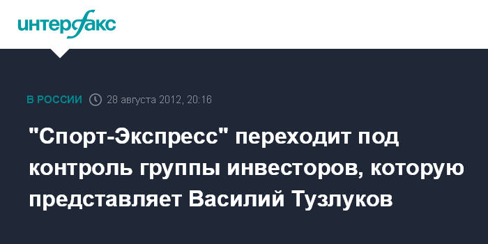 "Спорт-Экспресс" переходит под контроль группы инвесторов, которую представляет Василий Тузлуков