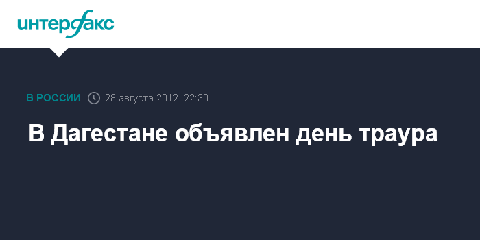 Махачкала. 28 августа. INTERFAX.RU - Президент Дагестана Магомедсалам Магомедов объявил среду, 29 августа 2012 года, днем траура в связи с убийством известного богослова шейха Саид Афанди Чиркейского и пятерых жителей республики.