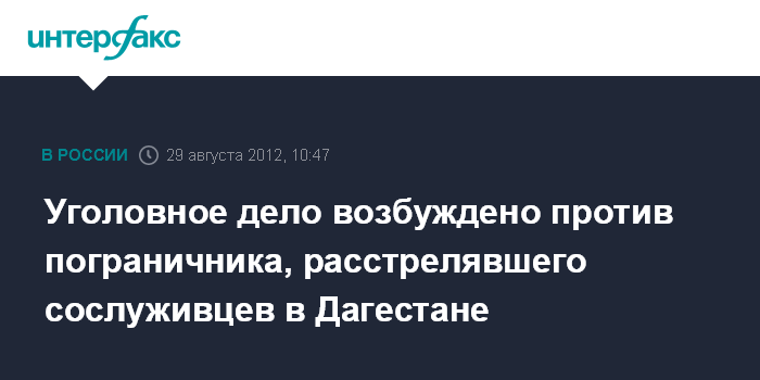 Москва. 29 августа. ИНТЕРФАКС - В отношении военнослужащего погрануправления ФСБ по Дагестану Рамзана Алиева, который застрелил семерых сослуживцев и впоследствии сам был убит, возбуждено уголовное дело.