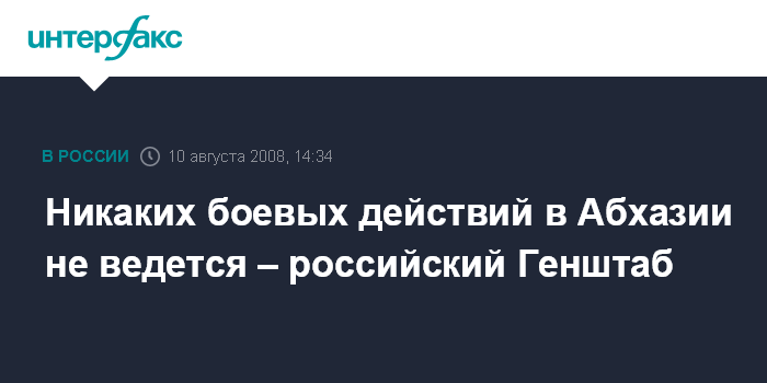 "Мы не собираемся проявлять инициативу по эскалации конфликта в этом районе. Нас интересует, прежде всего, стабилизация там (в абхазском регионе - ИФ) и доведение соответствующего миротворческого статуса в зоне южноосетинского конфликта", - заявил заместитель начальника Генштаба Вооруженных сил РФ Анатолий Ноговицын.
