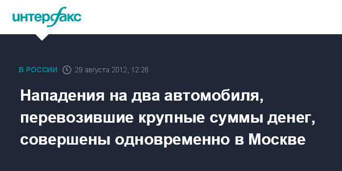 Нападения на два автомобиля, перевозившие крупные суммы денег, совершены одновременно в Москве