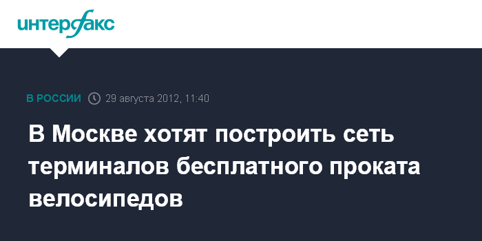 Москва. 29 августа. INTERFAX.RU - На центральной аллее парка "Сокольники" 30 августа состоится презентация проекта "ВелоРоссия", которая предполагает создание сети брендированных терминалов проката велосипедов и велосипедных парковок.