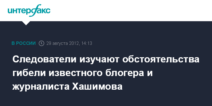 Москва. 29 августа. INTERFAX.RU - Следственный комитет РФ начал доследственную проверку по факту гибели известного журналиста и блогера Зафара Хашимова, более известный аудитории ЖЖ как churkan.