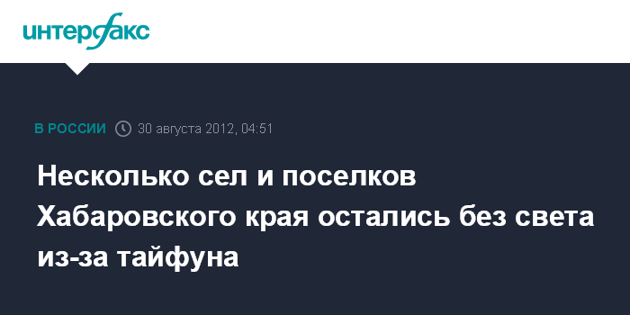 Хабаровск. 30 августа. ИНТЕРФАКС-ДАЛЬНИЙ ВОСТОК - Тайфун "Болавен" нарушил энергоснабжение нескольких населенных пунктов Хабаровского края, сообщает пресс-служба филиала ОАО "ДРСК" "Хабаровские электрические сети" в четверг.