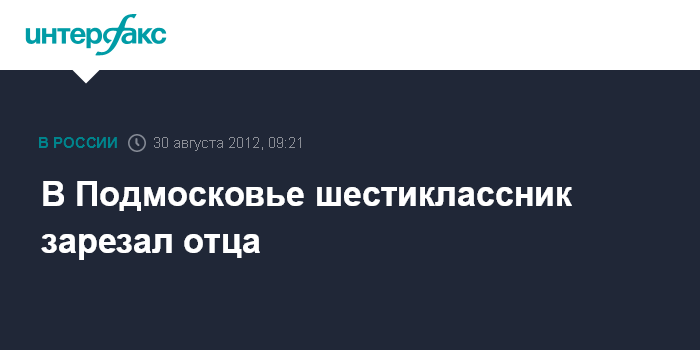Москва. 30 августа. INTERFAX.RU - Шестиклассник, поссорившись с папой, убил его ножом в подмосковном Королеве, сообщила "Интерфаксу" официальный представитель ГСУ СК РФ по Московской области Ирина Гуменная.