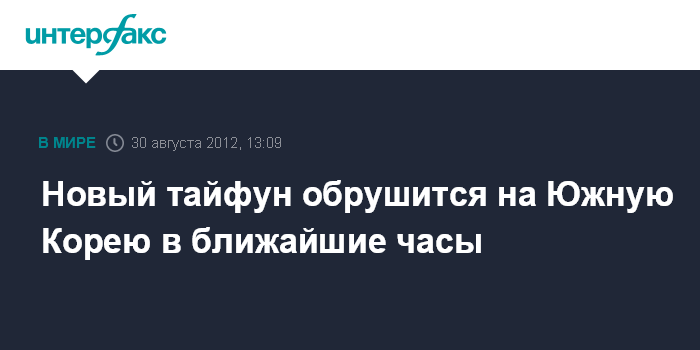 Сеул. 30 августа. INTERFAX.RU - Всего через несколько дней после прихода тайфуна "Болавен" тайфун "Тембин" обрушится на западное побережье Южной Кореи позже в четверг, сообщает метеорологическое управление страны.