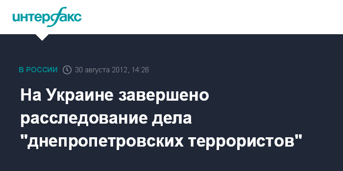 Киев. 30 августа. INTERFAX.RU - Служба безопасности Украины завершила расследование дела о взрывах в Днепропетровске, Харькове и Запорожье, сообщили агентству "Интерфакс-Украина" в пресс-центре СБУ в четверг.