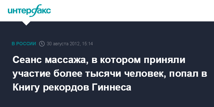 Этот результат был занесен в Книгу рекордов Гиннеса. Предыдущий рекорд был установлен в 2010 году в Австралии. Тогда в сеансе массажа участвовали 526 человек. Эти цифры включают в себя и массажистов, и тех, кому делали массаж.