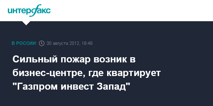 Сильный пожар возник в бизнес-центре, где квартирует "Газпром инвест Запад"
