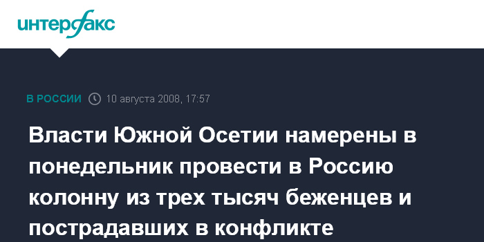 Власти Южной Осетии намерены в понедельник провести в Россию колонну из трех тысяч беженцев и пострадавших в конфликте