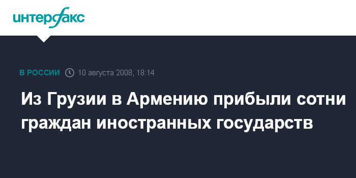 Ереван. 10 августа. ИНТЕРФАКС - При содействии Армении продолжается эвакуация иностранных граждан из Грузии в Ереван, сообщили "Интерфаксу" в воскресенье в пресс-службе министерства иностранных дел Армении.