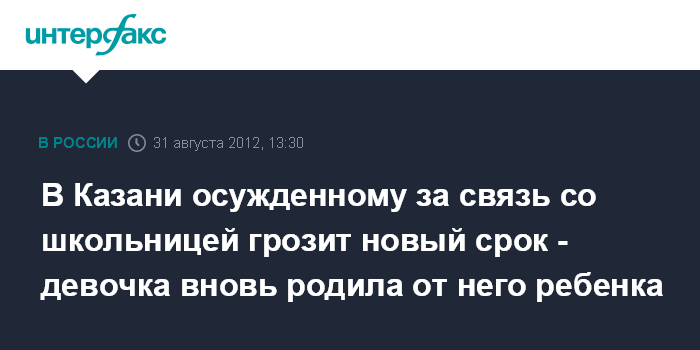 Казань. 31 августа. INTERFAX.RU - В Вахитовский районный суд Казани направлено уголовное дело в отношении 20-летнего Андрея Носкова, обвиняемого в повторной половой связи со школьницей, которая родила от него уже второго ребенка.