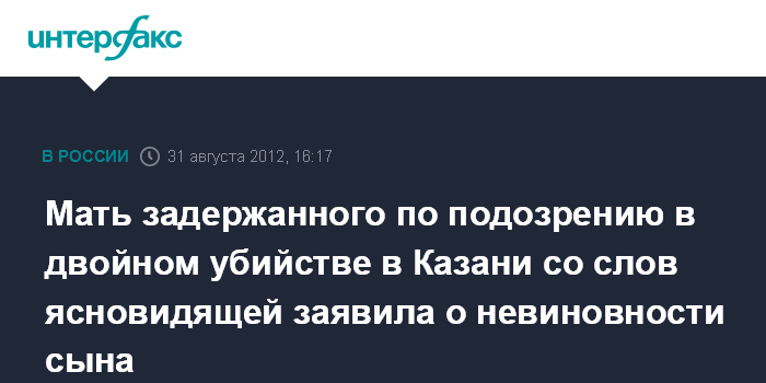 Мать задержанного по подозрению в двойном убийстве в Казани со слов ясновидящей заявила о невиновности сына