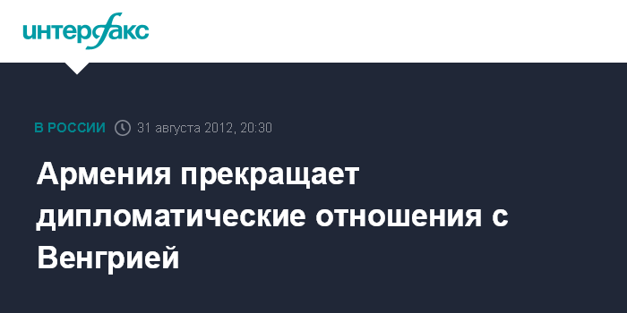 Ереван. 31 августа. INTERFAX.RU - Официальный Ереван заявил о прекращении дипломатических отношений с Будапештом.