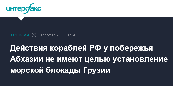 Действия кораблей РФ у побережья Абхазии не имеют целью установление морской блокады Грузии