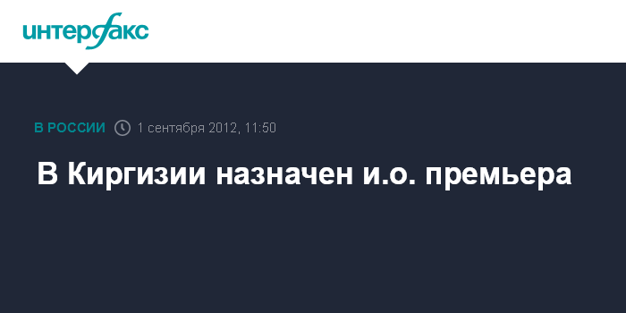 Бишкек. 1 сентября. INTERFAX.RU - Президент Киргизии Алмазбек Атамбаев принял отставку и.о. премьер-министра Омурбека Бабанова и теперь исполняющим обязанности главы правительства стал Аалы Карашев, сообщили "Интерфаксу" в пресс-службе главы государства.