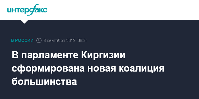 Эти три фракции были в составе прежней коалиции, куда еще входила "Республика". Коалиция распалась в конце августа из-за того, что "Ар-Намыс" и "Ата-Мекен" выступили против главы кабмина Омурбека Бабанова, являющегося лидером "Республики", и в знак протеста вышли из состава большинства. Новую коалицию по мандату президента формировала фракция Социал-демократической партии.