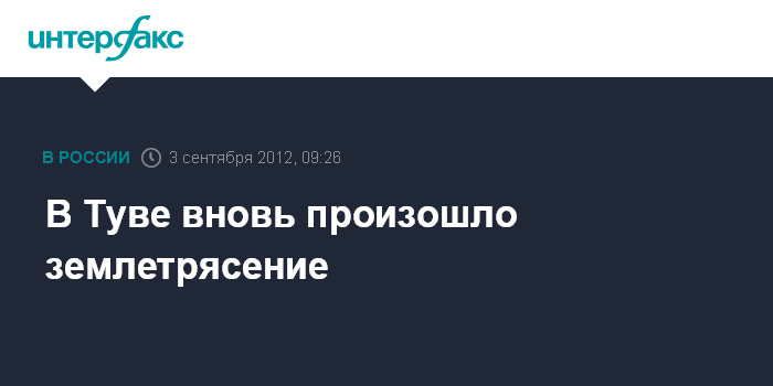 Новосибирск. 3 сентября. INTERFAX.RU - Землетрясение магнитудой 3,6 зафиксировано в Туве в понедельник, сообщает Геофизическая служба Сибирского отделения РАН.