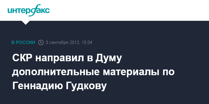 Москва. 3 сентября. INTERFAX.RU - Следственный комитет РФ направил в Госдуму дополнительные материалы, связанные с подозрениями в том, что депутат Геннадий Гудков в нарушение законодательства занимается бизнесом, сообщил официальный представитель СК РФ Владимир Маркин "Интерфаксу" в понедельник.