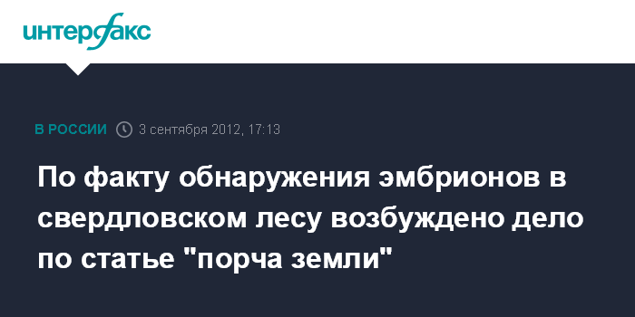 По факту обнаружения эмбрионов в свердловском лесу возбуждено дело по статье "порча земли"