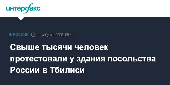 Брюссель. 10 августа. INTERFAX.RU - Более тысячи человек пришли в воскресенье поздно вечером к посольству РФ в Тбилиси. Участники акции выразили против политики России в отношении Грузии, требовали вывода российских войск.