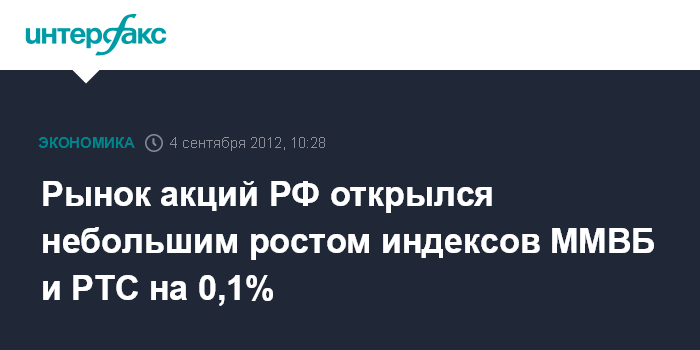 Рынок акций РФ открылся небольшим ростом индексов ММВБ и РТС на 0,1%